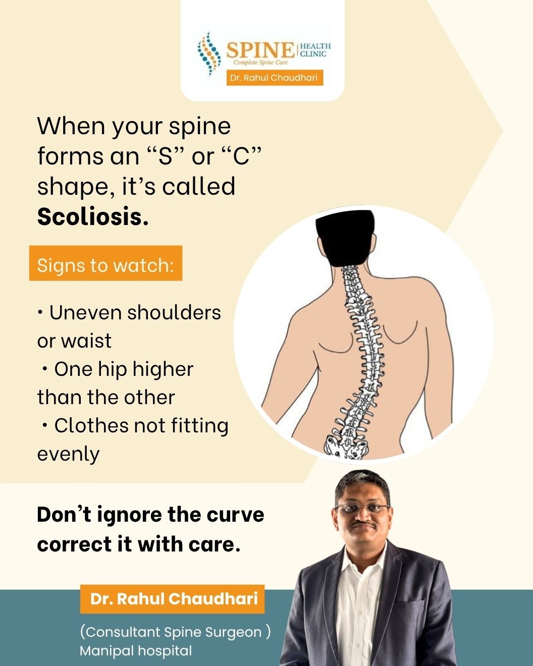 When your spine forms an 'S' or 'C' shape, it’s called Scoliosis. This spinal deformity can develop during growth or due to age-related changes. Common signs include uneven shoulders or waist, one hip higher than the other, or clothes not fitting evenly. Left untreated, scoliosis can worsen over time, affecting posture and movement. Early diagnosis and specialized spine care can help correct the curve and prevent complications. Don’t ignore the curve correct it with care and expert guidance. For advanced spine care, visit the Spine Hospital in Baner. Consult an Orthopedic doctor in Pune, Spine specialist in Balewadi, or the Best spine surgeon in Wakad. We offer Endoscopic and Laser spine surgery in Baner for safe, precise, and faster recovery. Get expert advice from Dr. Rahul Chaudhari, trusted Orthopaedic and Best Spine Surgeon at Manipal Hospital. Right guidance can make all the difference! Consultation Timings: Manipal Baner OPD – Tue, Thu, Sat: 1:00–3:00 PM & 5:30–7:00 PM Manipal Kharadi OPD – Mon, Wed: 1:00–4:00 PM 📞 Manipal Hospital: 020 6813 8888 Spine Health Clinic – Mon, Wed, Fri: 5:00–7:00 PM 📞 Clinic: 8010130003 🌐 Visit: drrahulchaudhari.com #scoliosis #spinecare #spinesurgeon #orthopedicdoctor #spinehealth #posturecorrection